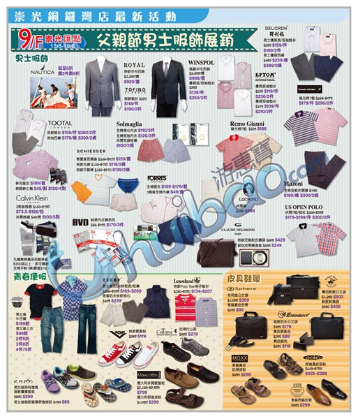 父亲节男士服饰低至5折:男士服饰、青春便服及皮具鞋履。