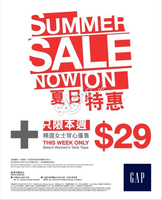 本周要去香港购物的同学们请注意啦!香港Gap正在夏日特惠活动中,精选女士背心只要HK$29啦!HK$29这样的白菜价估计不心动都难了吧?Gap是美国最大的服装公司之一,其“大胆、简易、真实”的时装文化让每个人都能轻松搭配,拥有时尚好品味。记得一定要去香港Gap啊,折扣只持续到本周。