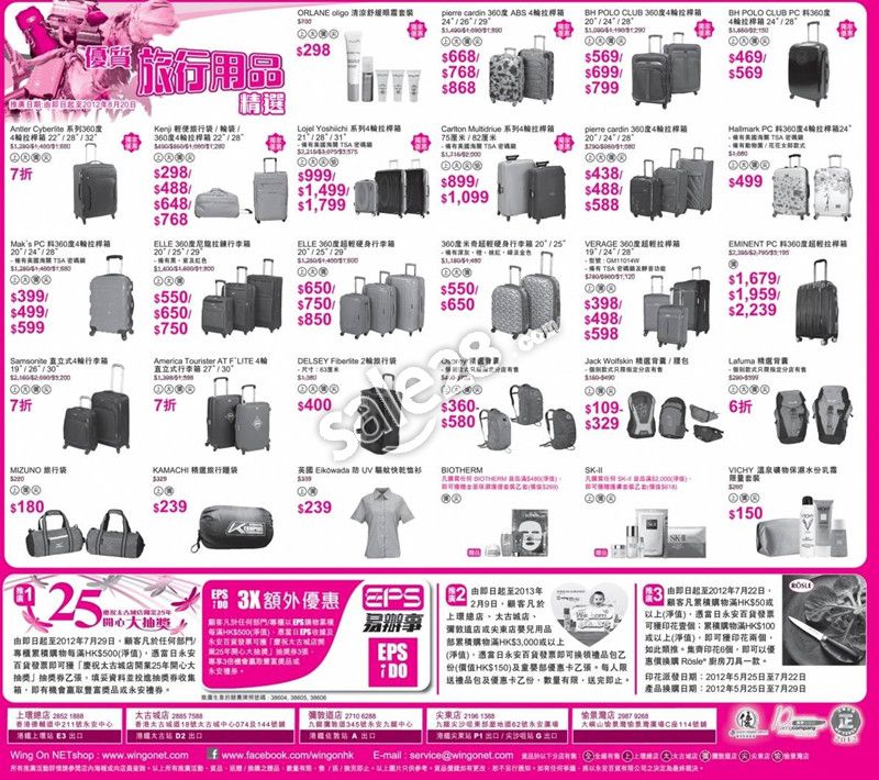 放暑假啦!学生们最开心的时刻到来了!有没有想过去香港旅游呢?旅游最需要的是什么呢?一款适合你的旅行箱啦!香港永安百货多款旅行用品正在大减价中,最低6折哦!还有其他商品也有折扣哦,不妨去看看啦!