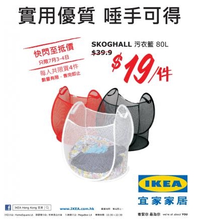 由今日起至7月4日,SKOGHALL污衣篮每个只系$19(原价$39.9, 80L)﹗快入货喇!