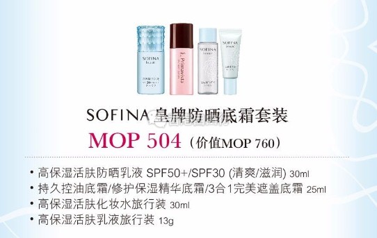 澳门新八佰伴VIP Day SOFINA尊享礼遇(附套装详情及价格)