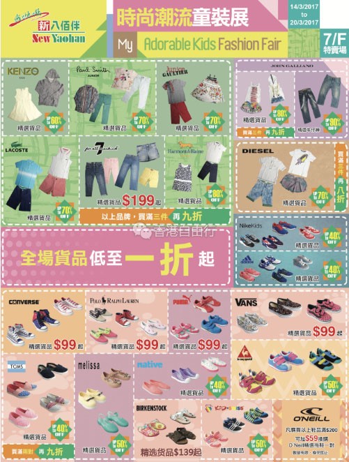 澳门打折:新八佰伴时尚潮流童装展 全场货品低至一折起(即日起至3月20日)