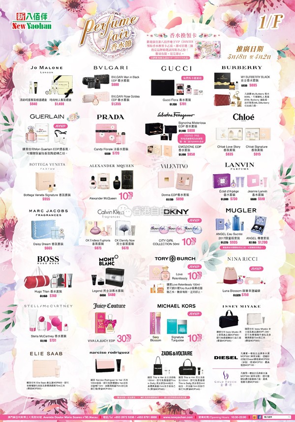 澳门打折:新八佰伴香水节惊喜礼遇 祖马龙、宝格丽、GUCCI、PRADA等30几款香水套装优惠