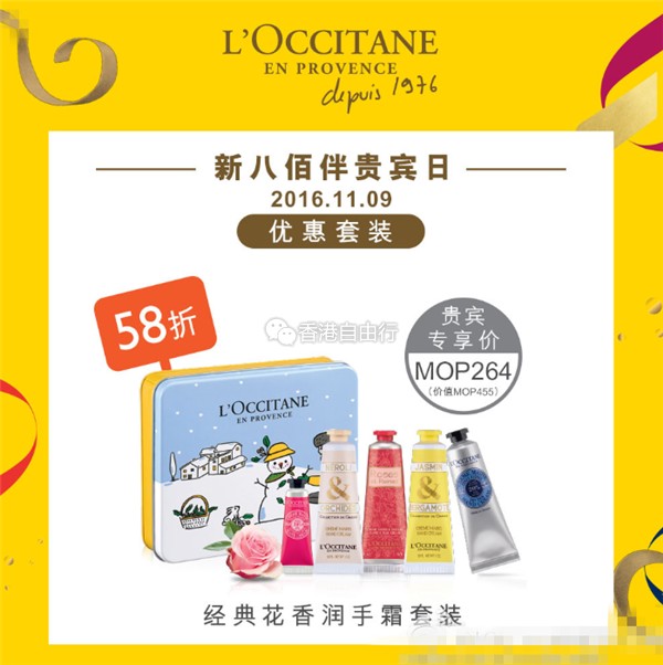 优惠直逼SOGO店庆 澳门新八佰伴VIP DAY欧舒丹、KOSE、科颜氏超全套装明日开抢