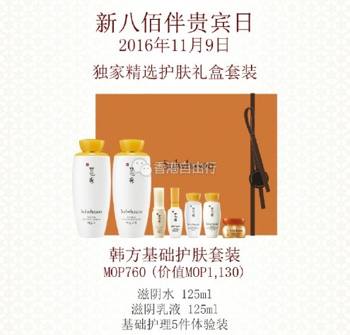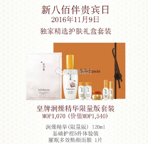澳门打折:折扣堪比SOGO店庆!雪花秀、IPSA 澳门新八佰伴贵宾日皇牌套装超值优惠