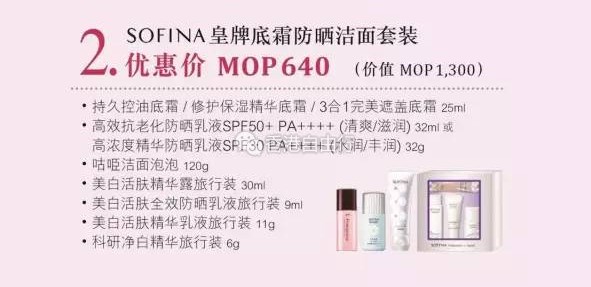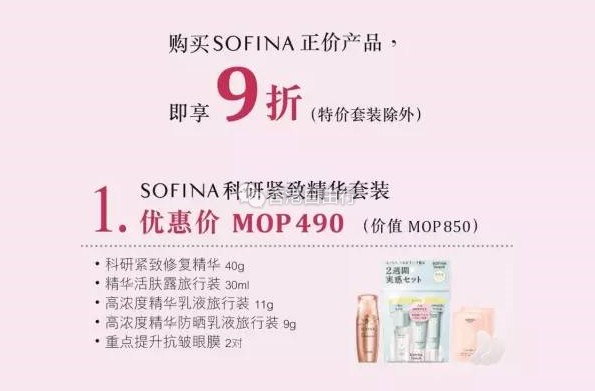 苏菲娜SOFINA 6月8日澳门新八佰伴优惠日 13款优惠套装等你来抢!(附套装详情及价格)