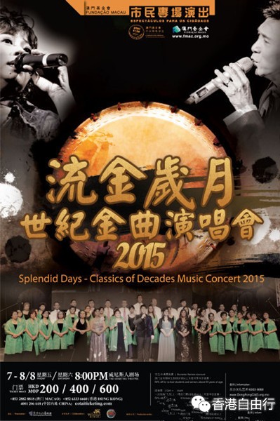 澳门自由行攻略:世纪金曲演唱会2015将于8月在澳门上演